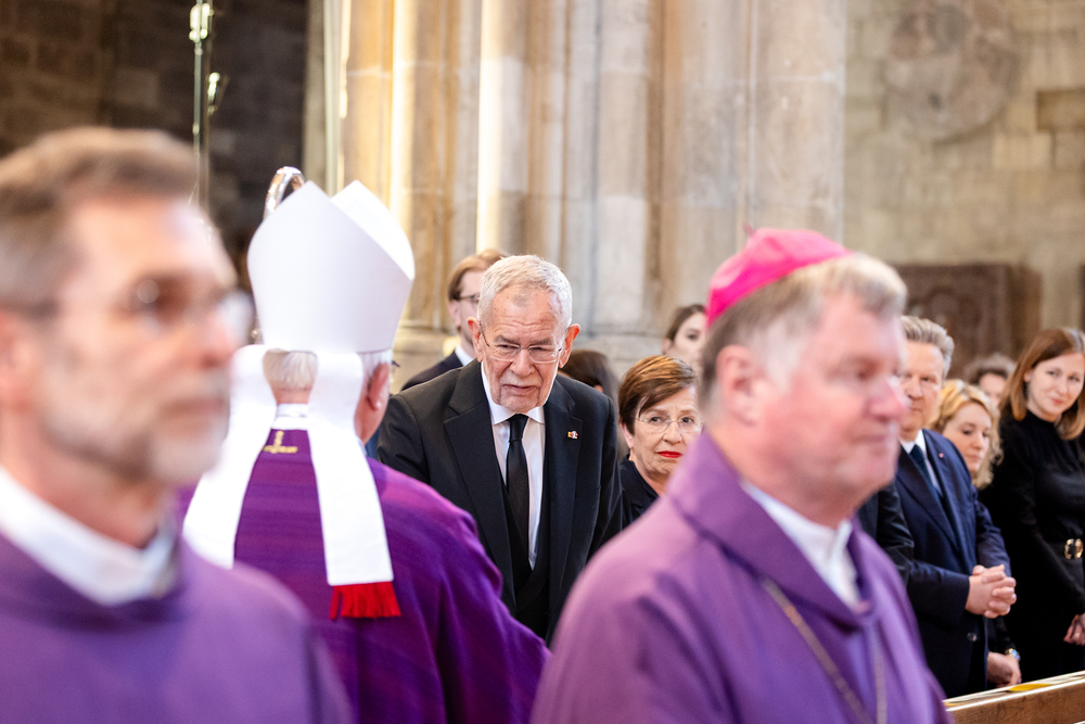 Mit einem "Requiem für seine Heiligkeit Papst Franziskus" nahm Österreich am Montagabend offiziell Abschied vom Papst. Dem Gottesdienst stand der Vorsitzende der Österreichischen Bischofskonferenz, Erzbischof Franz Lackner vor. Mit ihm konzelebrierten die heimischen Bischöfe. Die Politik war an erster Stelle von Bundespräsident Alexander Van der Bellen und Bundeskanzler Christian Stocker vertreten. Zahlreiche Gläubige gaben dem Papst im vollen Dom ebenfalls die letzte Ehre