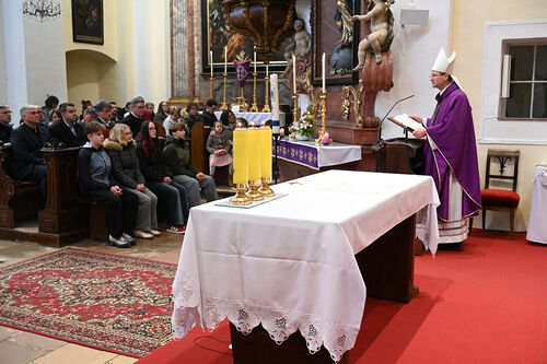 Im Rahmen der Visitation des Dekanates Zistersdorf feierte der Wiener Weihbischof Stephan Turnovszky die Sonntagsmesse in der Pfarrkirche von Zistersdorf. Anschließend an den Gottesdienst bestand die Möglichkeit zum Gespräch mit dem Bischof und die Pfarre lud alle zum Fastensuppenessen in den Pfarrhof ein.